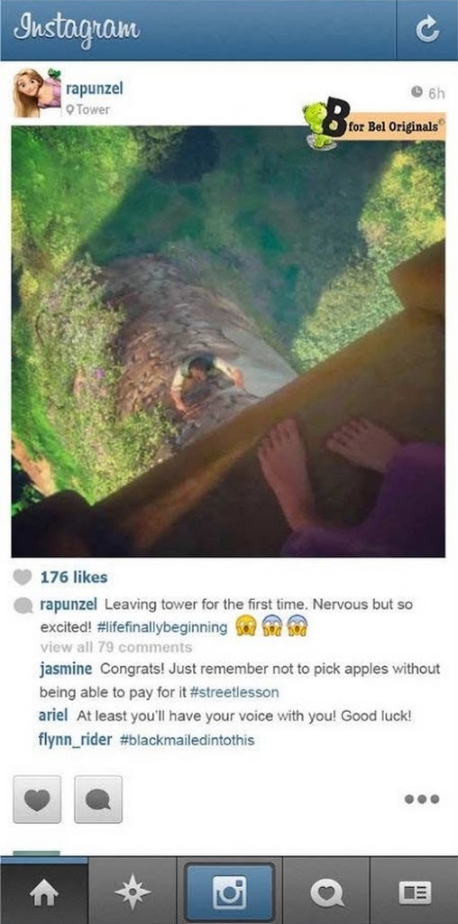 30 Agosto 2013La moda del selfie (a proposito, sapete che da qualche giorno questo termine è entrato ufficialmente nel dizionario di Oxford?), degli hashtag, dei filtri e più in generale di Instagram ha ormai contagiato molti. C’è chi dice (con parecchi miei dubbi) che sia la nuova frontiera della fotografia, chi ha deciso di scattare veri e propri servizi solo con un semplice smartphone e chi critica il social network del momento, colpevole di aver stravolto il concetto di foto ancor più di un qualsiasi programma di fotoritocco, considerando che è possibile postare solo ciò che vogliamo sia visibile, ritagliando, ritoccando e aggiungendo numerosi filtri, insomma, stravolgendo del tutto il soggetto e la foto originale. Quanto a follower, hashtag, tag e la netiquette a essi legato, farei prima a scrivere un capitolo a parte. E se anche le principesse Disney avessero uno smartphone e pubblicassero le foto su Instagram? A rispondere all’interrogativo ci hanno pensato gli ideatori di B for Bel, che hanno dato vita a ” If Disney Princesses had Instagram…“, una serie di scatti che ricalcano i più celebri del social network e documentano la vita delle principesse della Disney. (continua a leggere)